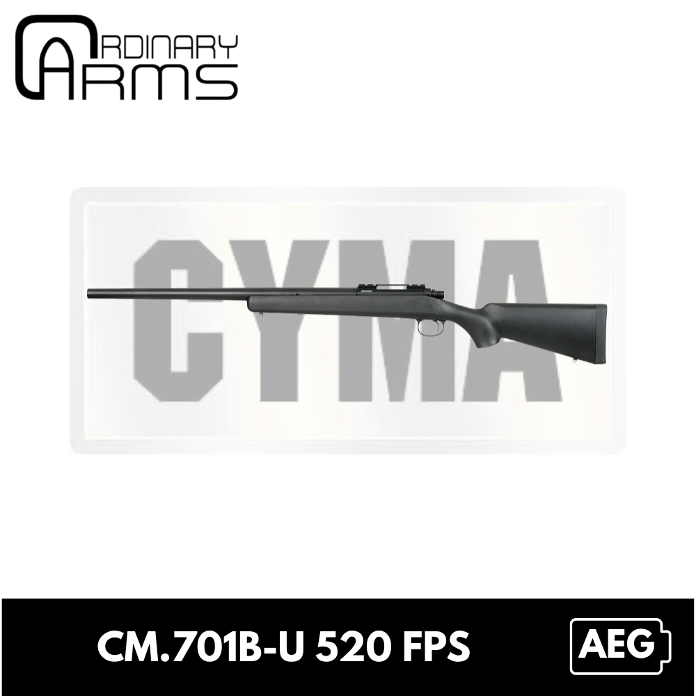 CYMA CM.701B-U Yükseltilmiş Versiyon, popüler Tokyo Marui VSR10 sistemini kullanır. İki ana bölümden oluşur: benzersiz bir gravürlü seri numarasına sahip inç alüminyum namlu ve güçlü bir polimer dipçik. Namlunun üst kısmında, optik nişangahları takmak için Picatinny rayı bulunur.